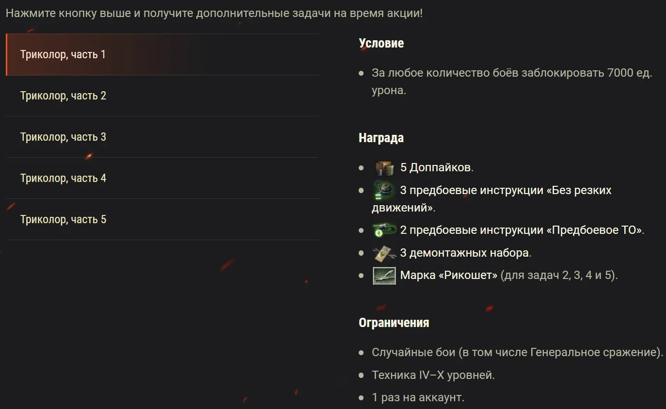 * Награды за выполнение боевых задач суммируются при соблюдении всех условий и ограничений.