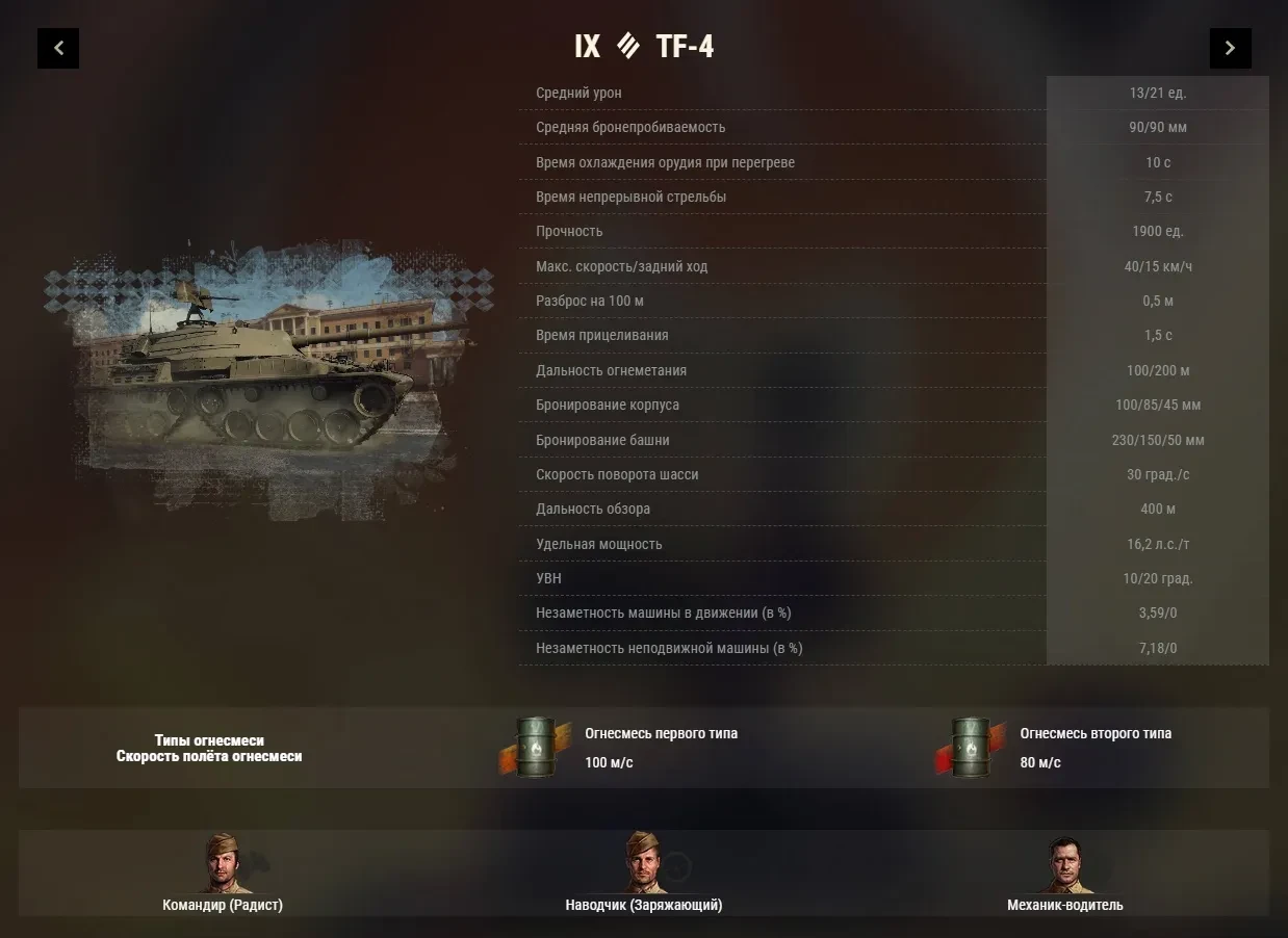 ТТХ огнемётных тяжей