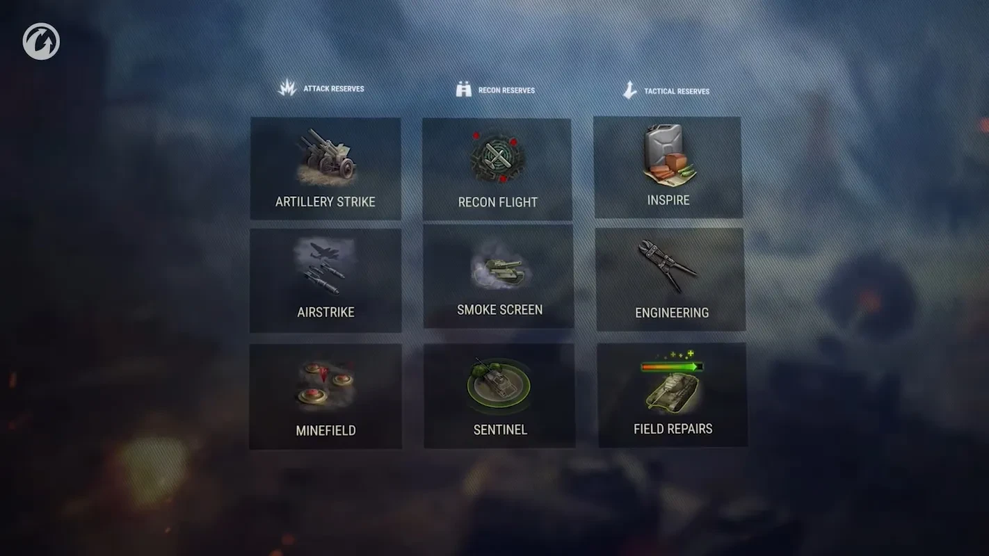 - «Полевой ремонт» (NEW) – Ускоряет ремонт в Зонах обслуживания, а также немного восстанавливает очки прочности во время боя. Если резерв активирован, он сильно уменьшает урон от Минного поля. Резерв не может быть остановлен если танку будет наносится урон.