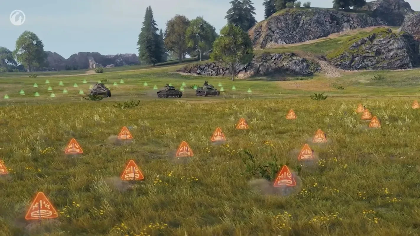 - «Минное поле» (NEW) – Взят с режима Стальной охотник. Работает примерно также, но находится на поле боя дольше. Мины оглушают противника и наносят урон. Союзные мины помечены зелёными иконками и не наносят урон игроку и союзникам. Вражеские мины будут видны в радиусе 50 метров. Вы можете уничтожить их выстрелом, Артобстрелом, Авиаударом или вашем Минным полем. В случае если вы уничтожаете вражеское Минное поле вашим, оба будут уничтожены. Минные поля могут быть обнаружены Самолётом-разведчиком или новым резервом Часовой.