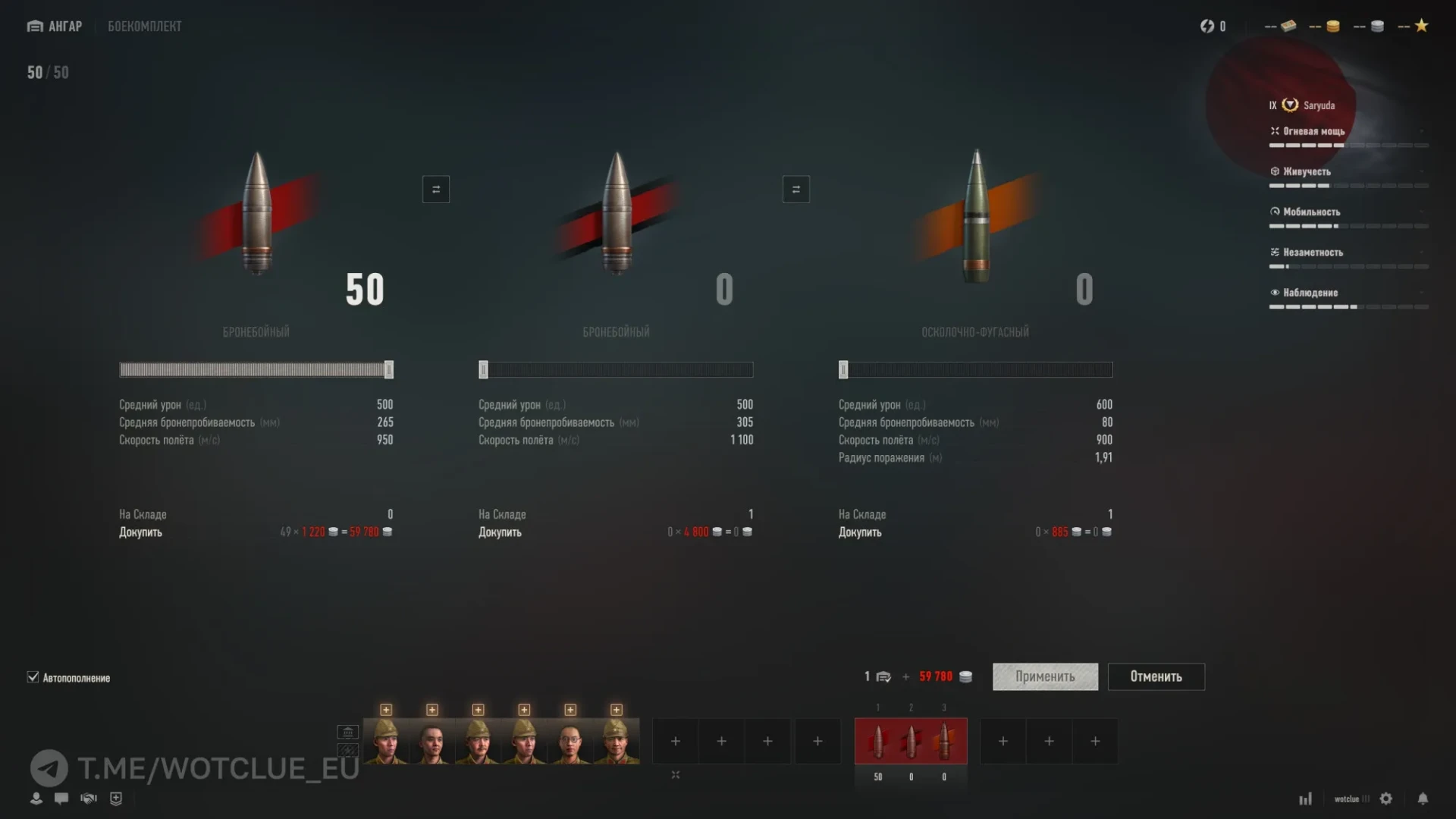 - Средняя бронепробиваемость Бронебойным снарядом: 265