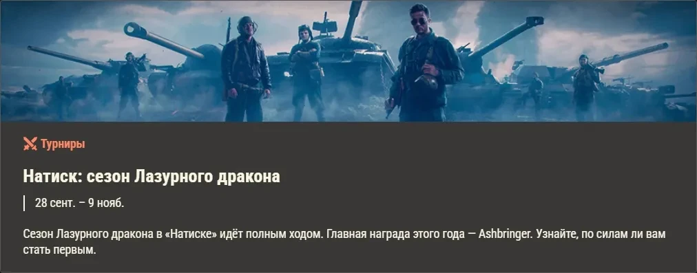 Четвёртый сезон серии турниров «Легенды Натиска» от AMD пройдёт в октябре (с перерывом в середине). Следите за противостоянием сильнейших команд EU-региона и зарабатывайте Twitch Drops для Магазина жетонов. Вы можете получить премиум машину VIII уровня и не только!