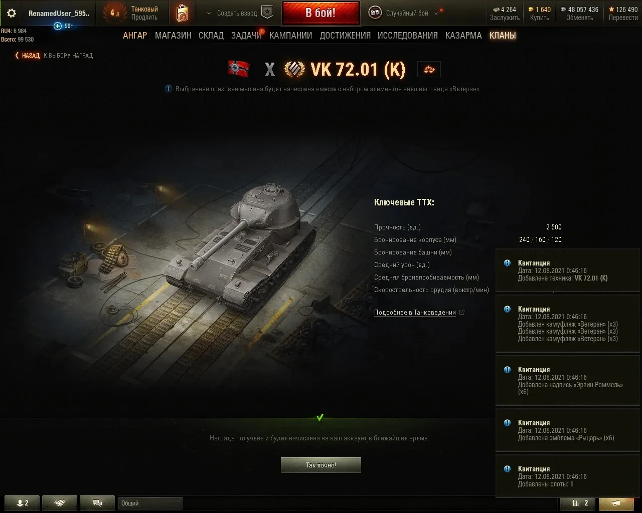 Сегодня ночью (около 00:38 МСК) открылась возможность забирать танки за ивент ГК и боны, а чуть ранее, вчера вечером, начисли стили, нашивки и тп.