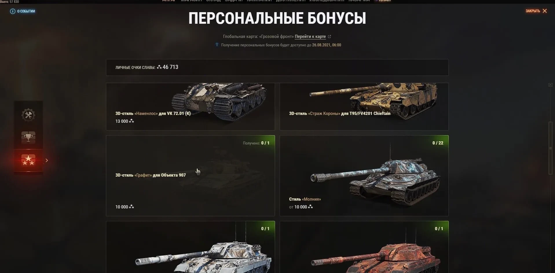 ** За время события можно собрать только один премиум танк, поэтому делайте выбор заранее.