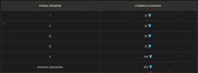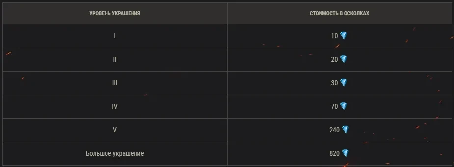 Стоимость одного украшения в осколках всегда фиксированная и зависит от его уровня.
