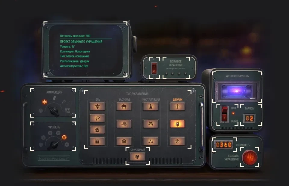 - Разбивайте ненужные украшения на осколки и используйте их в Новом годном коллайдере, чтобы создать украшения, которых ещё нет в вашей коллекции.