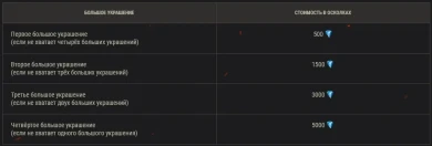 ** Большие украшения не увеличивают уровень атмосферы праздника, но каждое из них позволит вам зарабатывать на 2,5% больше кредитов в случайных боях. Бонус становится активным, как только большое украшение устанавливается на своё место.