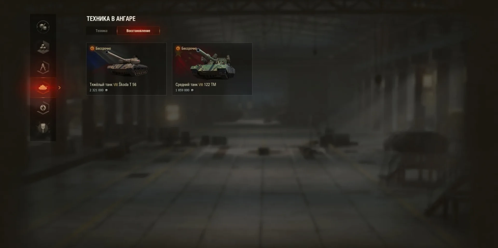 - Нажмите на раздел «Восстановление», чтобы увидеть список редких и премиум танков, которые вы можете восстановить.