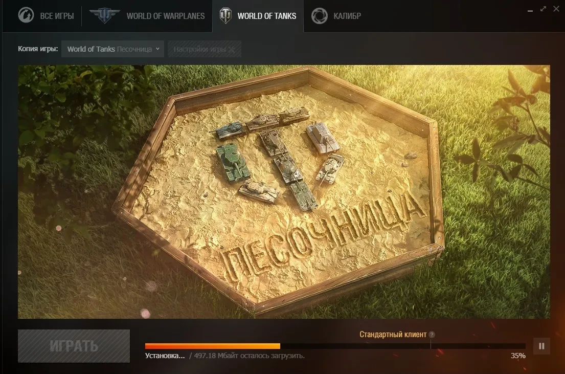 Если WGC нет, скачать сам Wargaming.net Game Center можно тут сразу с установкой Песочницы: ссылка.