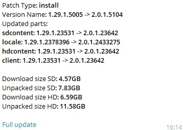 Обновление произойдёт 1.29.1 => 2.0.1 (из-за этого такой размер).