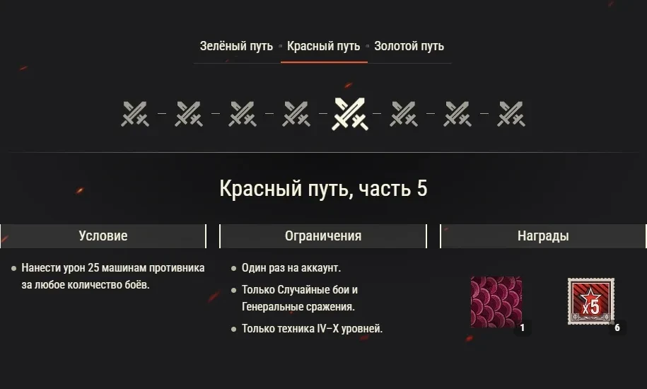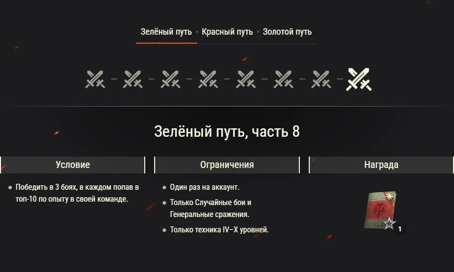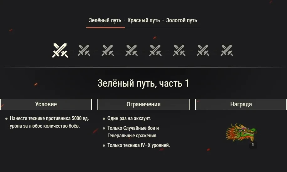 Выполните цепочку задач, посвящённую Дуань-у, и получите тематический 2D-стиль и декали, а также дни Танкового премиум аккаунта, учебные материалы и другие полезности. Встаньте на один из трёх путей с разными уровнями сложности и наградами: зелёный, красный или золотой!