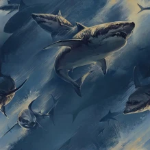 Известная в науке как Carcharodon carcharias (акула с зубчатыми зубами), большая белая акула носит титул главного хищника океана. Она способна учуять каплю крови на расстоянии сотен метров, а её инстинкт хищника срабатывает мгновенно, как только она уловит запах. С помощью исключительного обоняния, острого зрения и способности к электролокации, она движется к добыче с головокружительной скоростью, обнажая свои 300 жутких зубов в угрожающей ухмылке, которая предвещает неизбежную смертельную атаку.