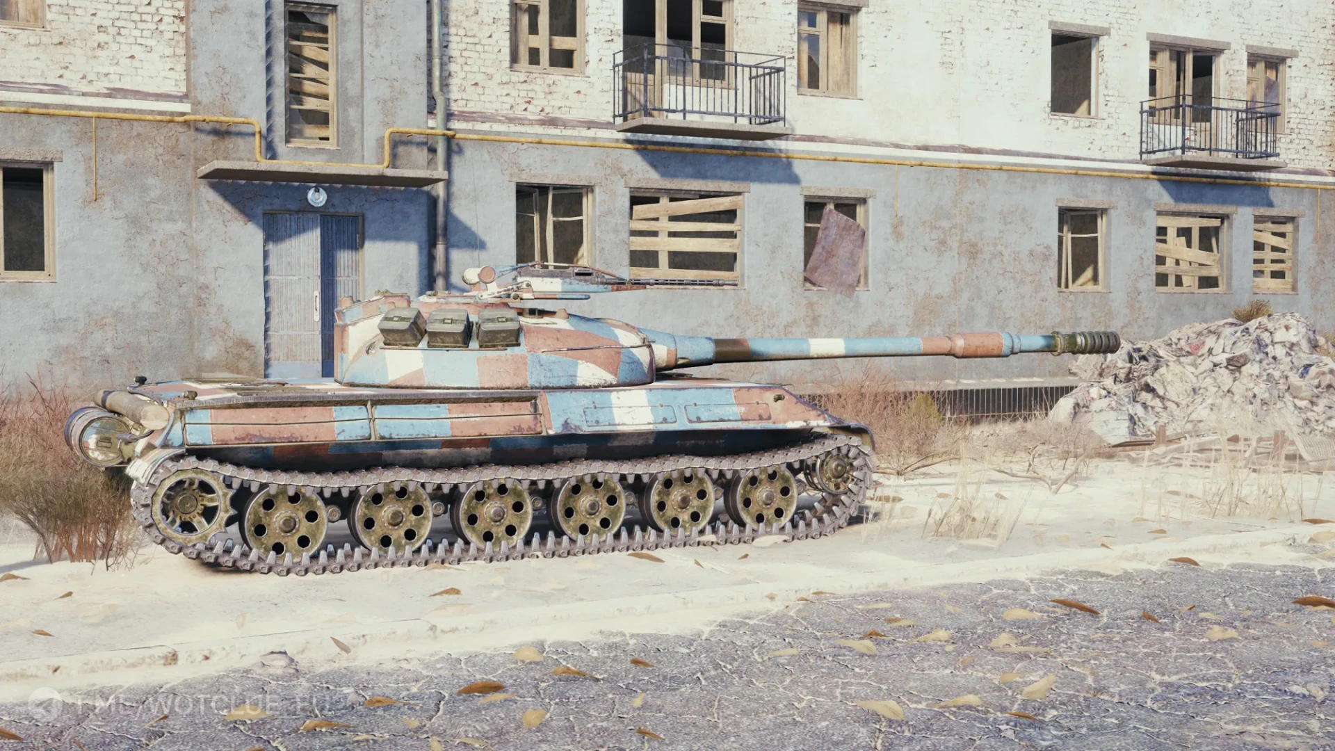 Изначально танки не должны были участвовать в городских сражениях, но со временем ситуация изменилась. Противостояние на узких улицах отличается от боя на открытой местности. Стандартный зелёный и чёрный камуфляж слишком выделяется на фоне серых городских пейзажей. Прямые строгие формы, пастельные тона — это может выглядеть странно на первый взгляд, но такой камуфляж отлично дезориентирует противника в условиях городского боя.