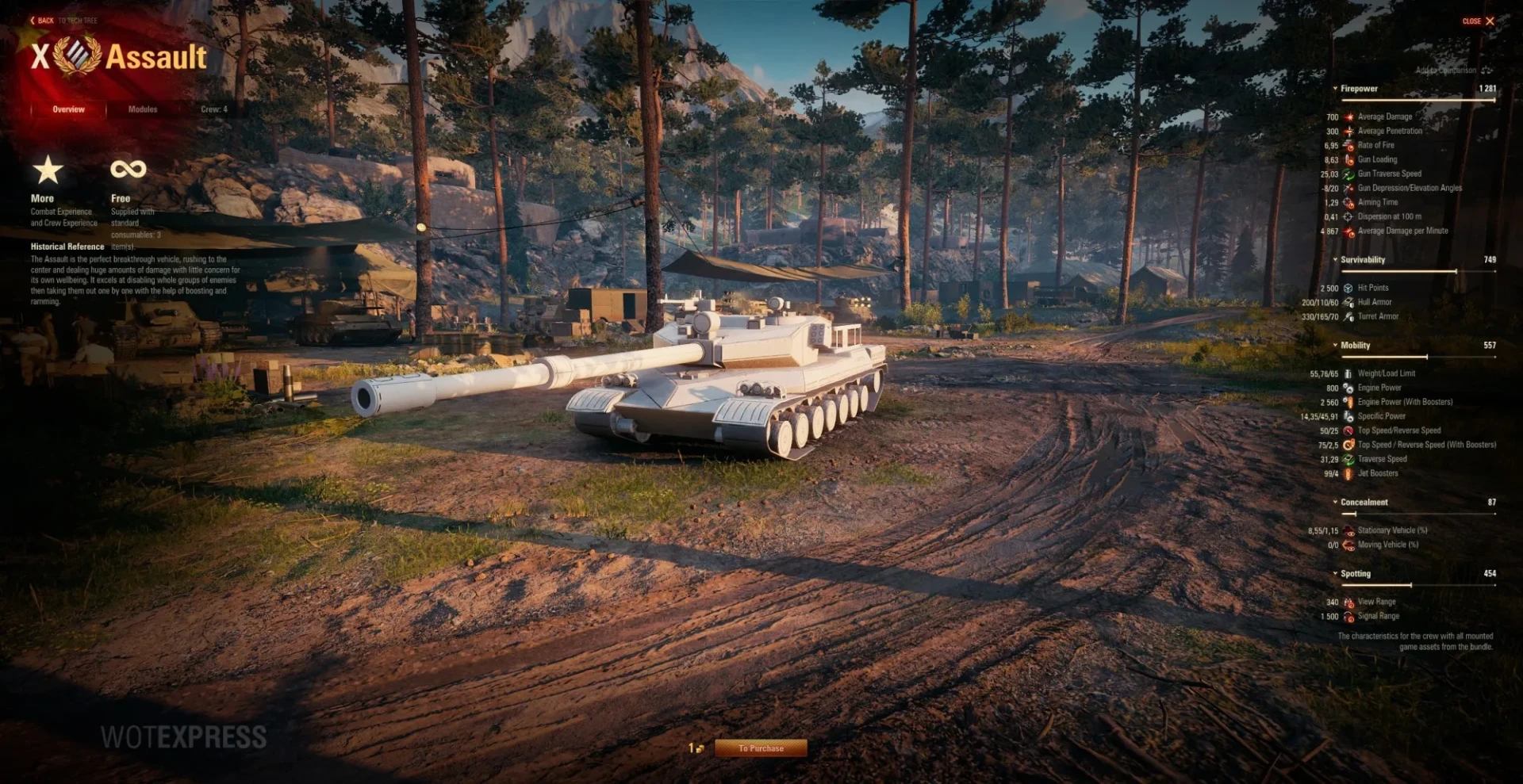 Одна из основных особенностей, которая уже была известна, так это игра 3 разных команд в одном бою по 5 человек на уникальной карте. В бой можно выходить как одному, так и в составе до 3 игроков. Вы сможете выбрать один из трёх ивентовых танков: Assault (BZ-75) имеет большой урон, Carrier (AMX 13 105) очень мобильный, Support (Leopard 1) может лечить союзников.
