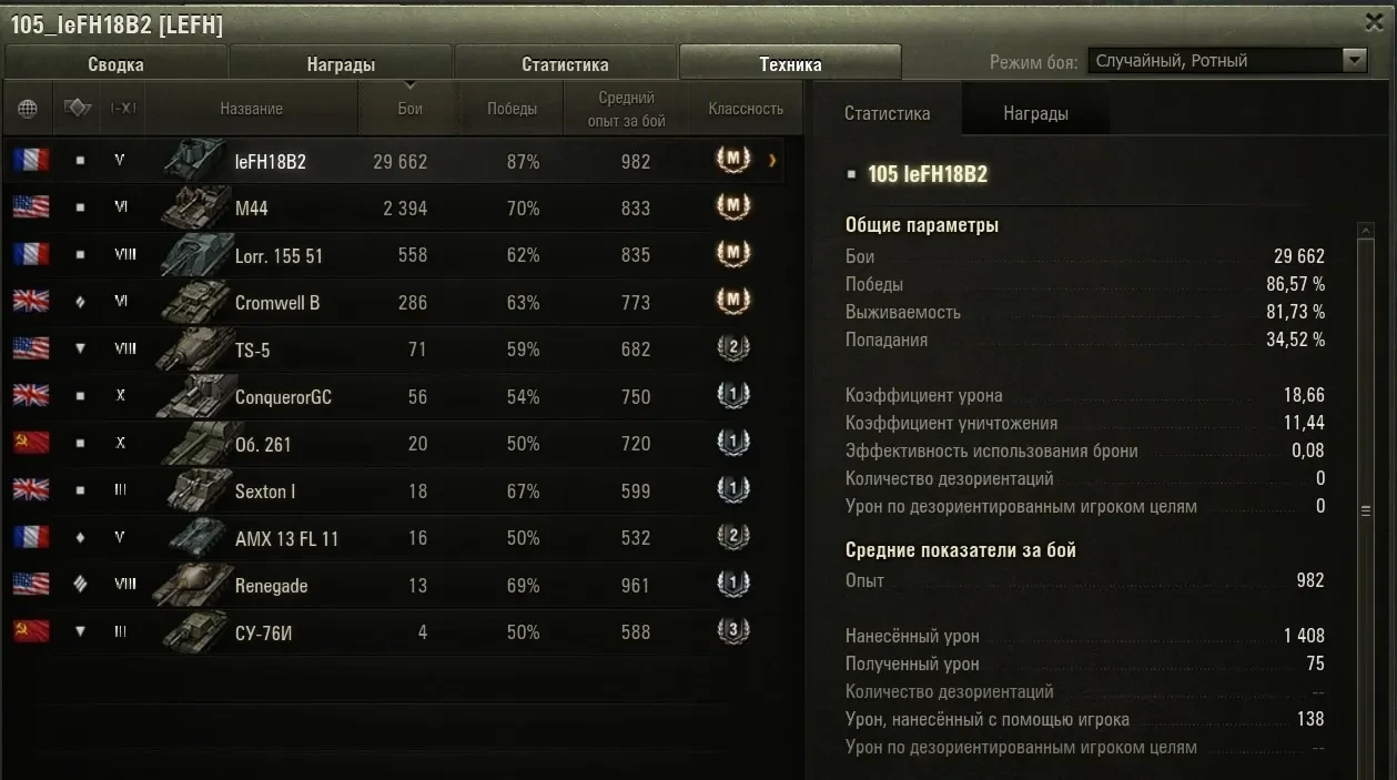 33к боёв, 84% побед, и всё это на 105 leFH18B2.