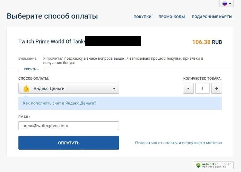 2) Далее вас перекинет на сайт оплаты или вы сразу туда попадёте. Вводим актуальную почту (куда есть доступ) или что просят и подтверждаем покупку.