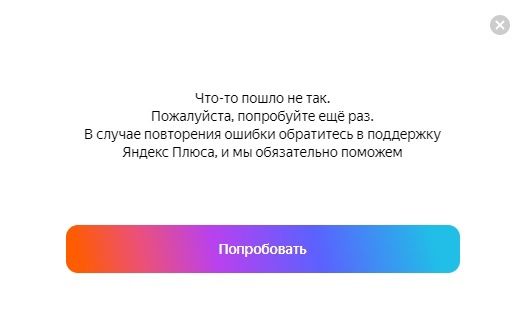 В случае повторения ошибки обратитесь в поддержку Яндекс Плюса, и мы обязательно поможем