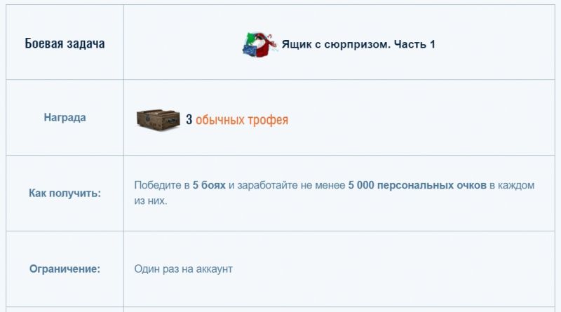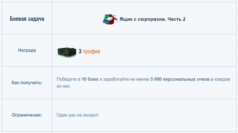 Как получить: Победите в 5 боях и заработайте не менее 5 000 персональных очков в каждом из них.