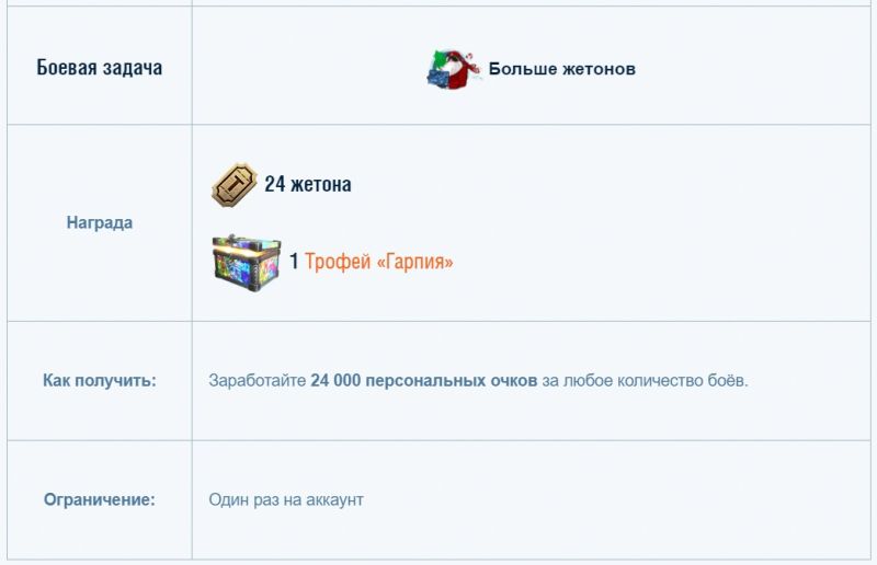 Как получить: Заработайте 24 000 персональных очков за любое количество боёв.