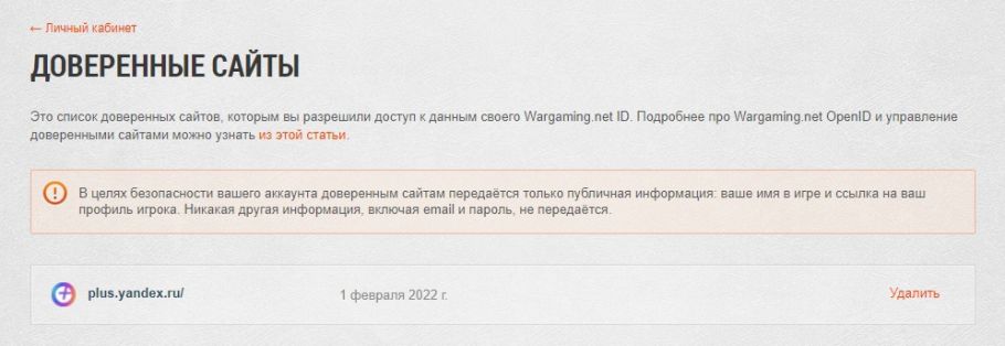 1. Заходим в Личный кабинет WG https://ru.wargaming.net/personal/ того танкового аккаунта, у которого нужно разорвать связь с аккаунтом Яндекса.
