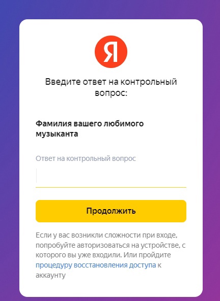 Отвечаем на контрольный вопрос при входе в аккуант Яндекса (обычно он совпадет с паролем, в любом все данные вам пришли при покупке):