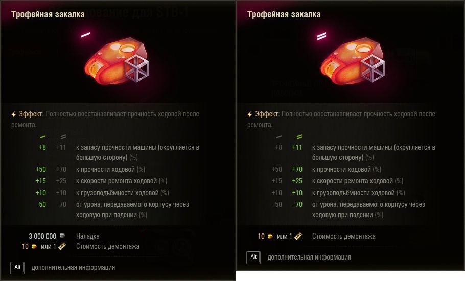 У оборудования «Противоосколочный подбой» появился дополнительный параметр, уменьшающий силу воздействия оглушения на экипаж (-10%/-15% — в зависимости от того, было ли оборудование установлено в специализированный слот).