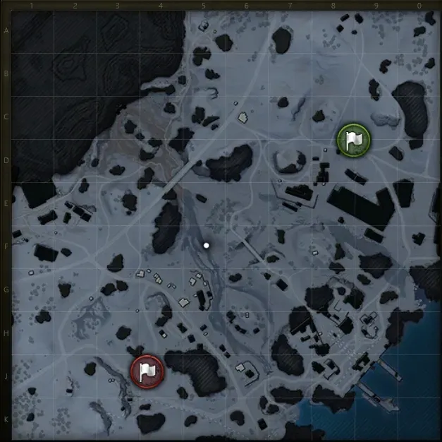 Пути к портовой зоне переработаны, добавлены дополнительные укрытия для более безопасного продвижения к ключевым позициям. - Центральная часть карты (квадраты F5–F6, E5–E6)