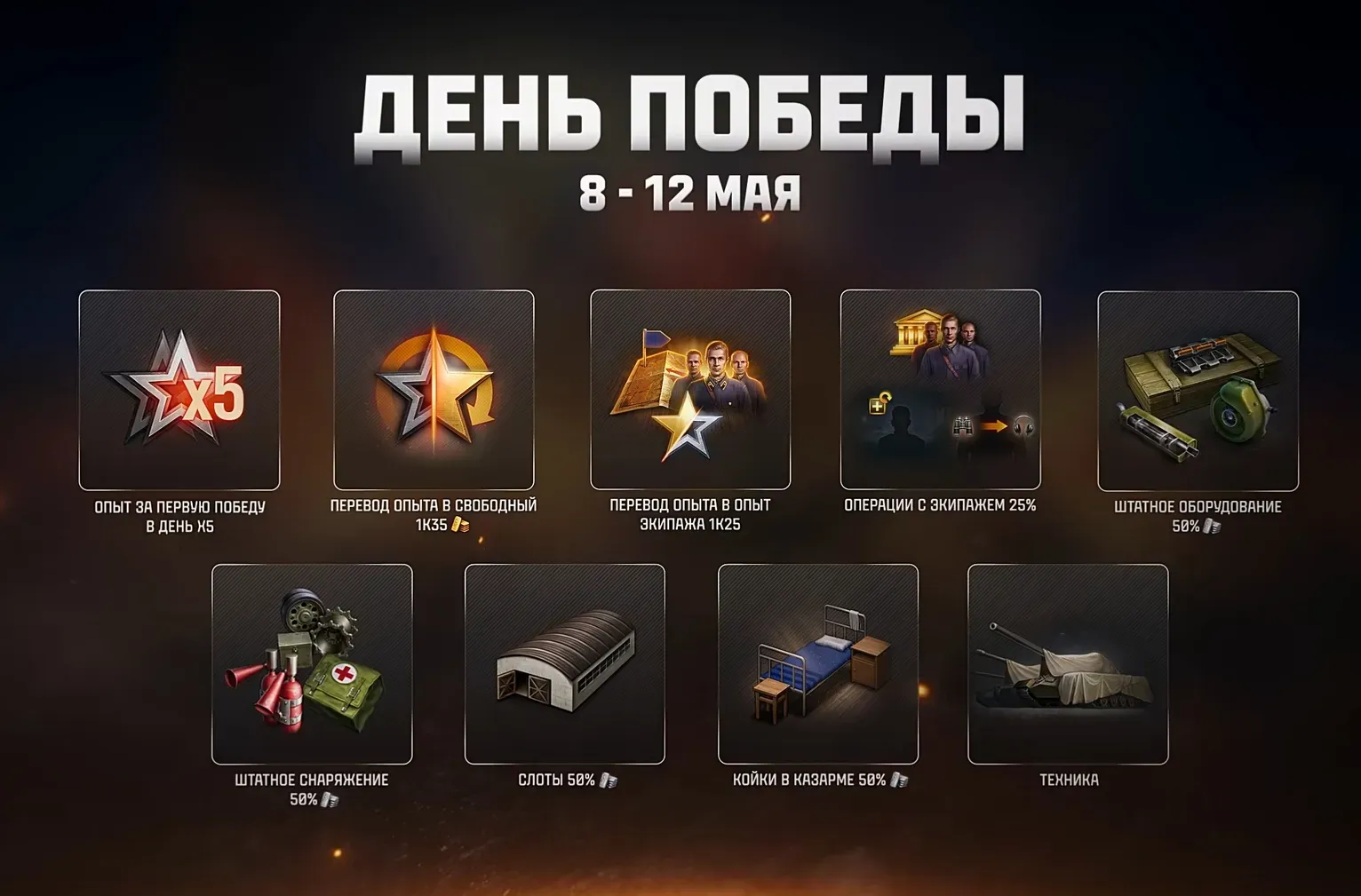 Ко Дню Победы в игре пройдёт серия праздничных акций и скидок, которые будут действовать с 8 по 12 мая.