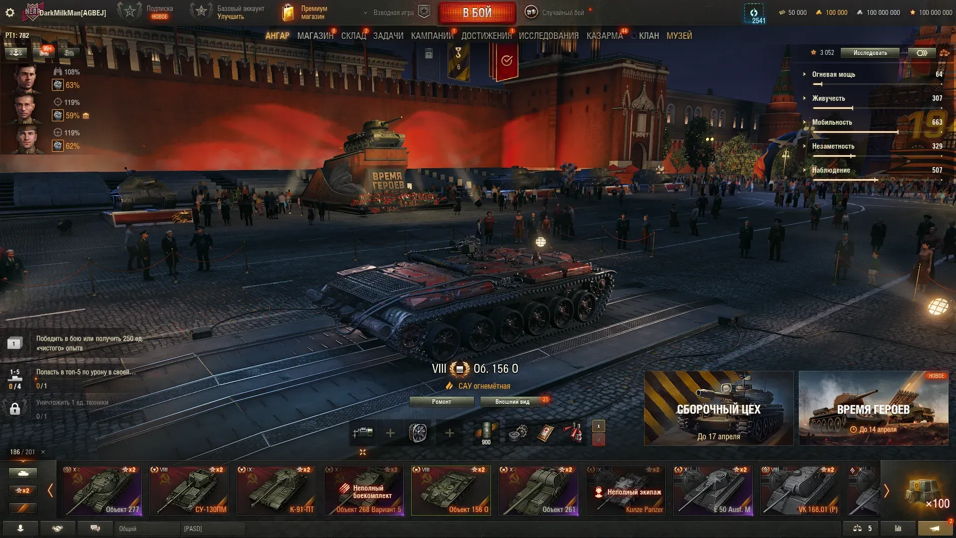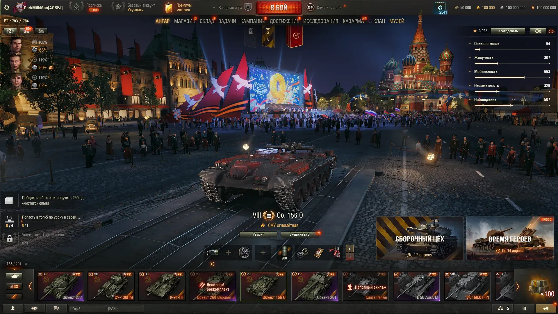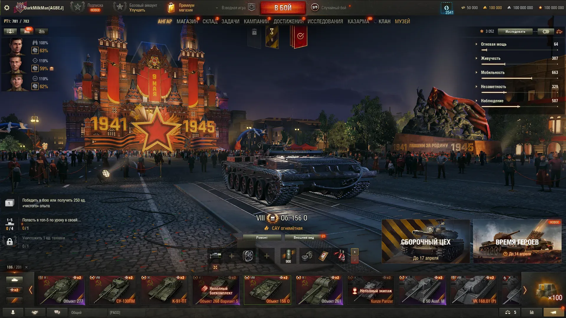 На тесте обновления 1.42 игроков встречает обновлённый ангар для празднования 9 мая, выполненный в виде Красной площади.