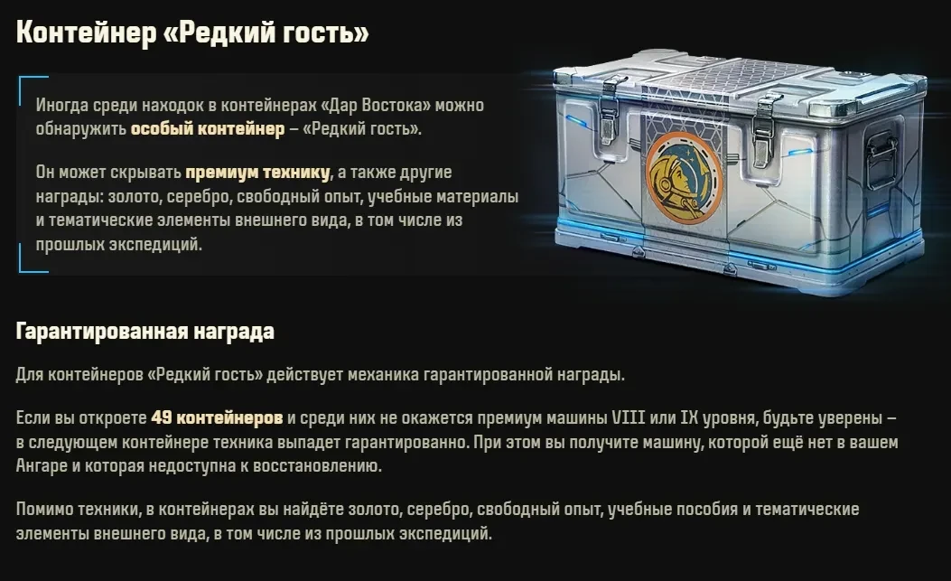 Контейнер «Редкий гость» можно получить с шансом 20% из контейнера «Дар Востока».