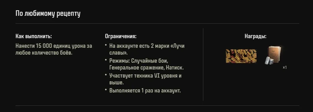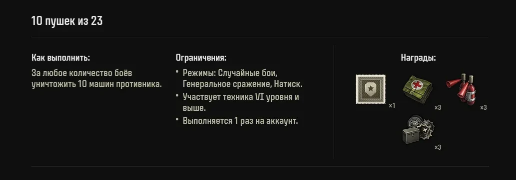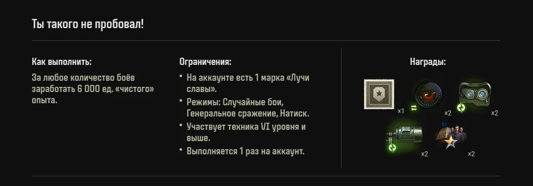 Заработать 6 000 ед. "чистого" опыта за любое количество боёв.
