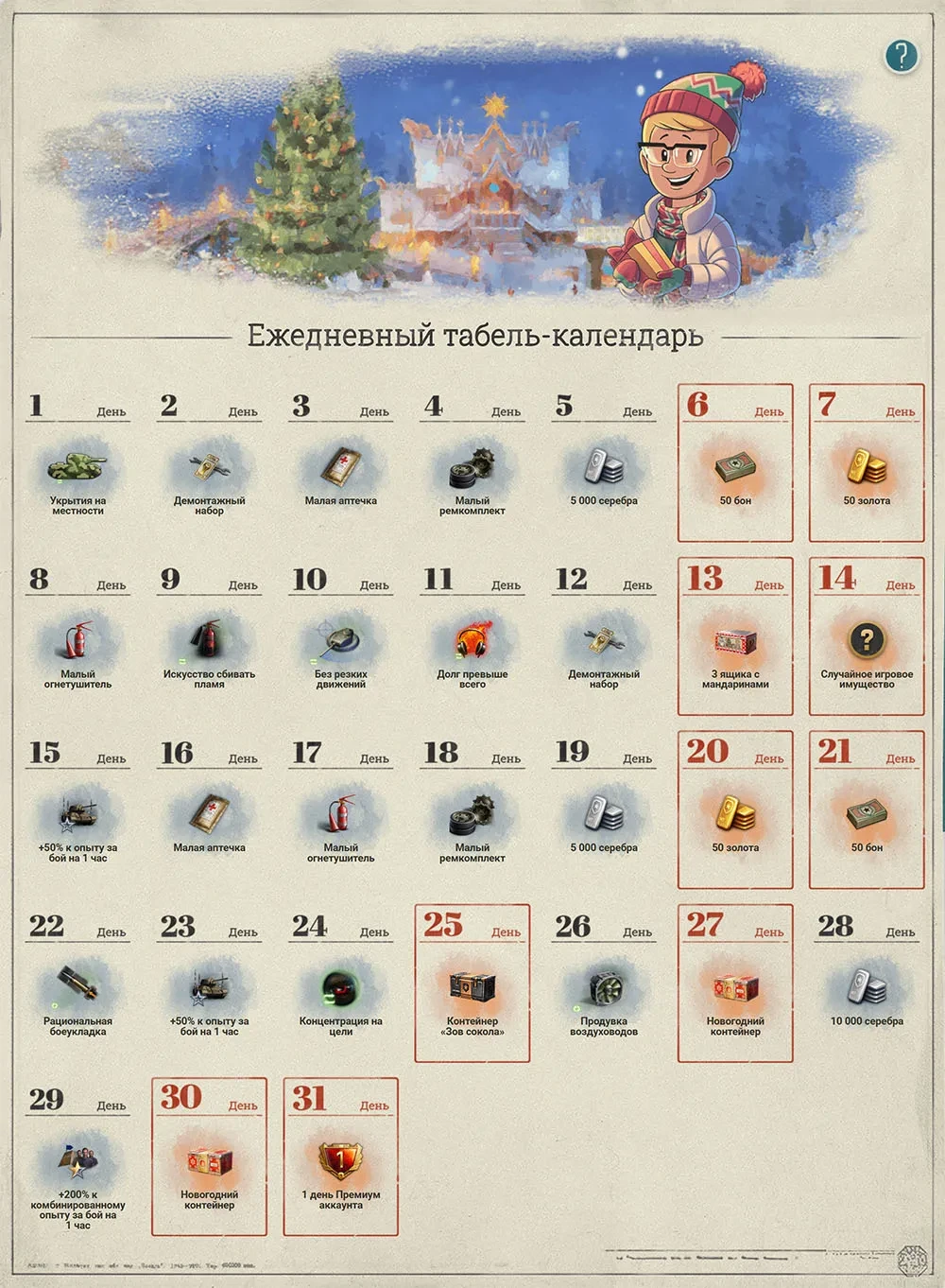 - Если вы забрали награду в календаре, но не зашли в игру до 3:00 (МСК) следующего дня, награда не будет доставлена. Пока вы её не заберёте, награда следующего дня не откроется.