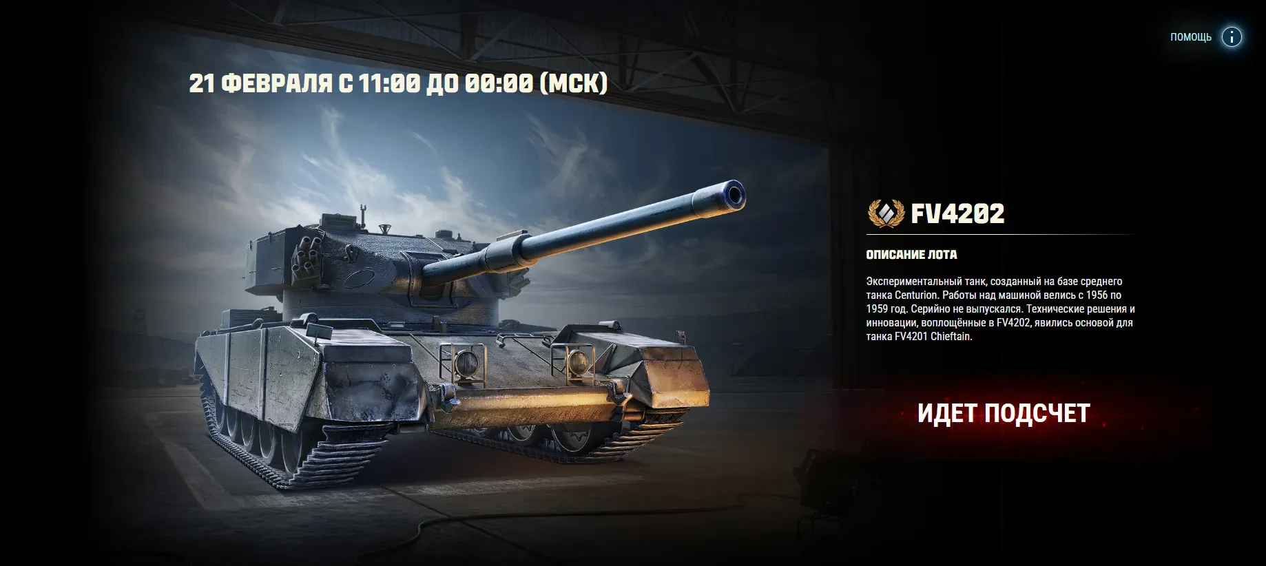Пятый лот аукциона — британский СТ VIII уровня FV4202!