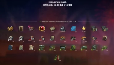 В главе всего 50 этапов. Кроме танка можно получить члена экипажа Светлану Кошкину и кучу других наград. Все они на скрине.