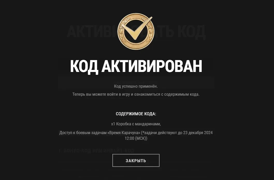 Активируем тут: https://lesta.ru/shop/redeem/?bonus_mode=KARACHUN24