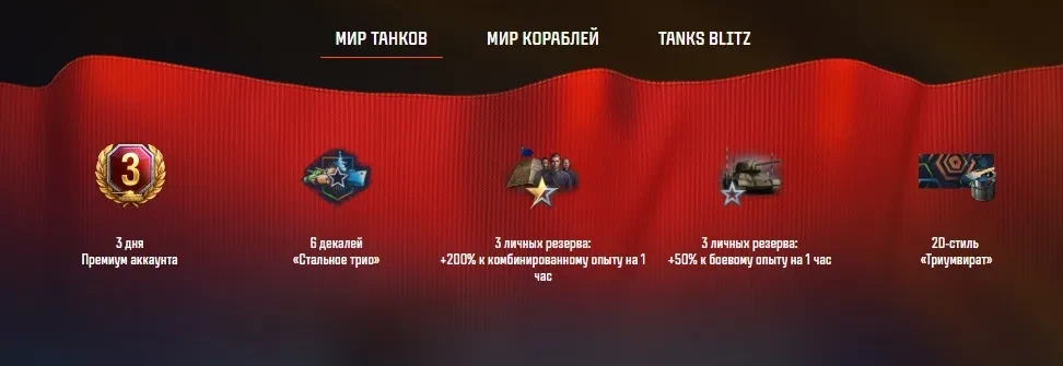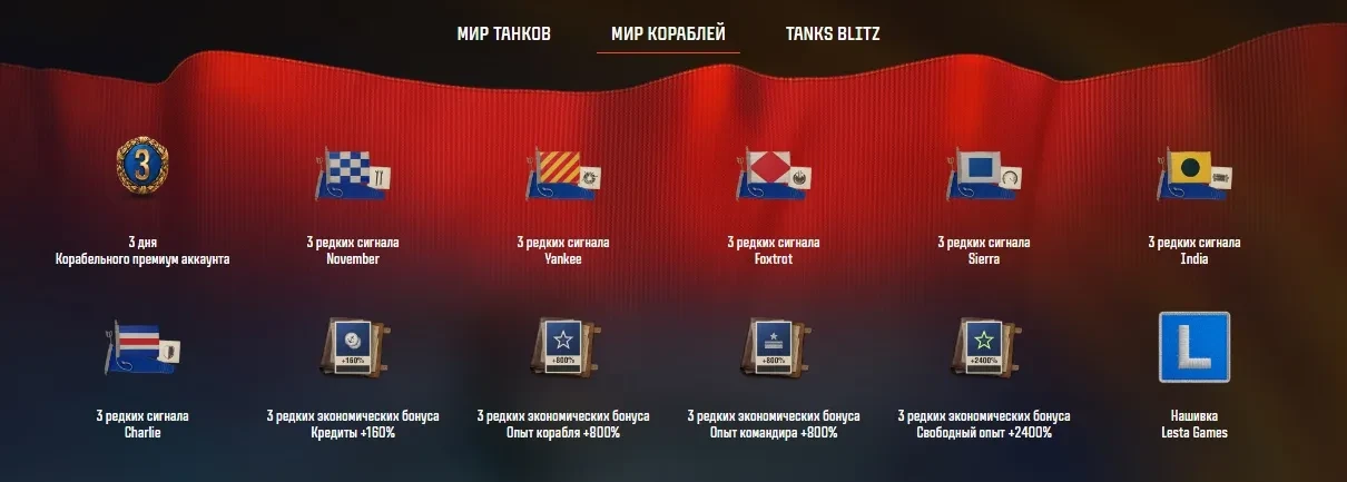 Даёт награды во всех трёх играх Лесты: Мир танков, Мир короблей, Tanks Blitz.