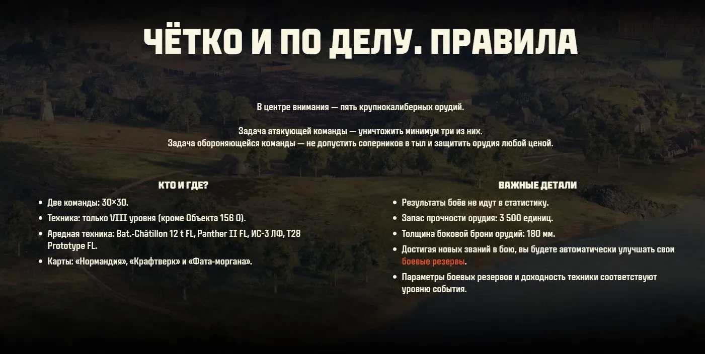 - Параметры боевых резервов и доходность техники соответствуют уровню события.