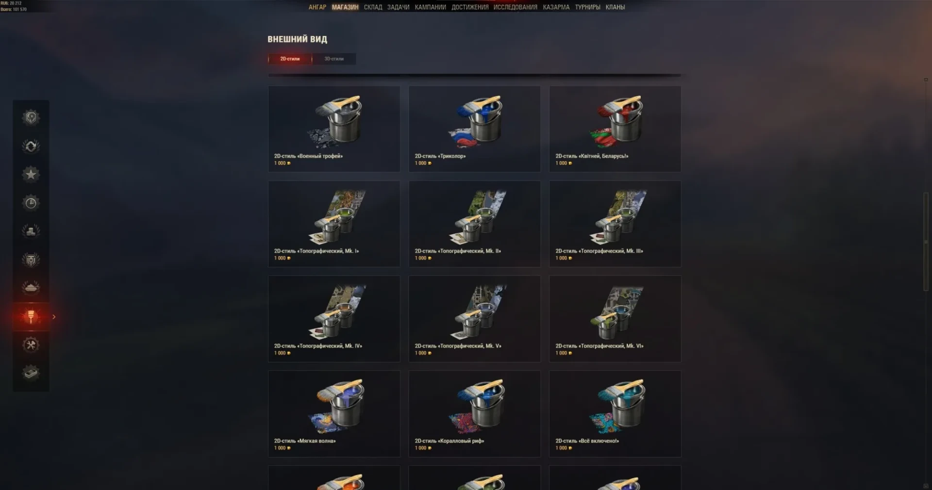 Магазин => раздел «Внешний вид» (третий снизу) => подраздел: 2D-стили (сверху).