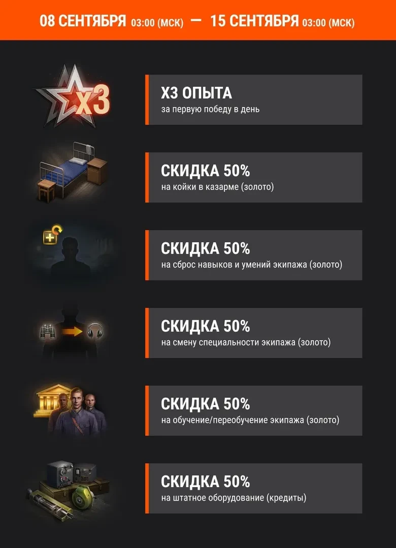 С 8 сентября 03:00 по 15 сентября 03:00 (МСК) вас ожидает: