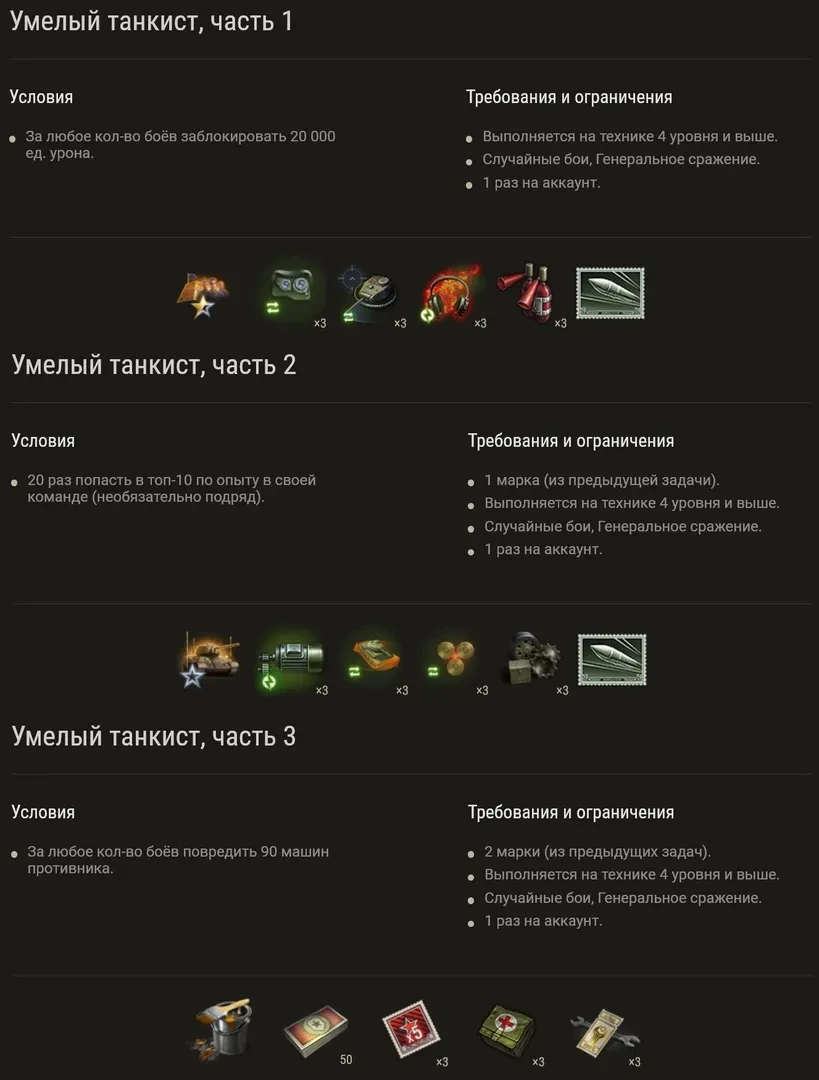 * Награды за выполнение боевых задач суммируются при соблюдении всех условий и ограничений.