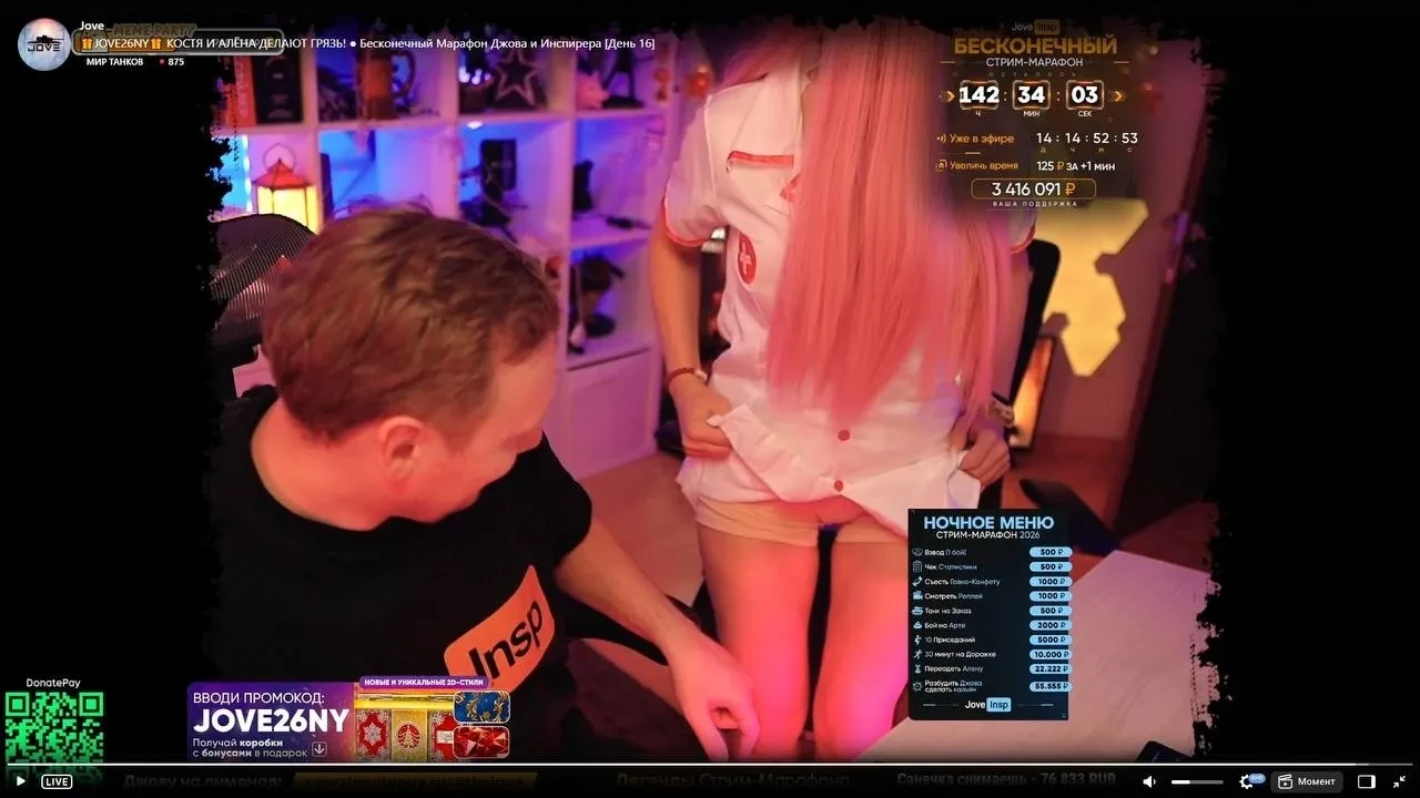 В шоу участвовали более десяти гостей, проводились различные челленджи. К Jove можно относиться по-разному, но он создал мощное шоу и заслуженно получает признание. Обогнать его может только Клумба. Сейчас на его стриме собрано 7 миллионов рублей донатами.