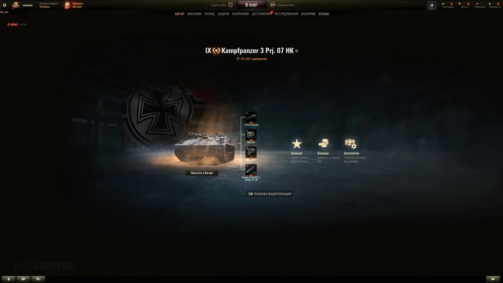 Kampfpanzer 3 Prj. 07 HK — новый танк 9 лвл с осадным режимом в Мире танков