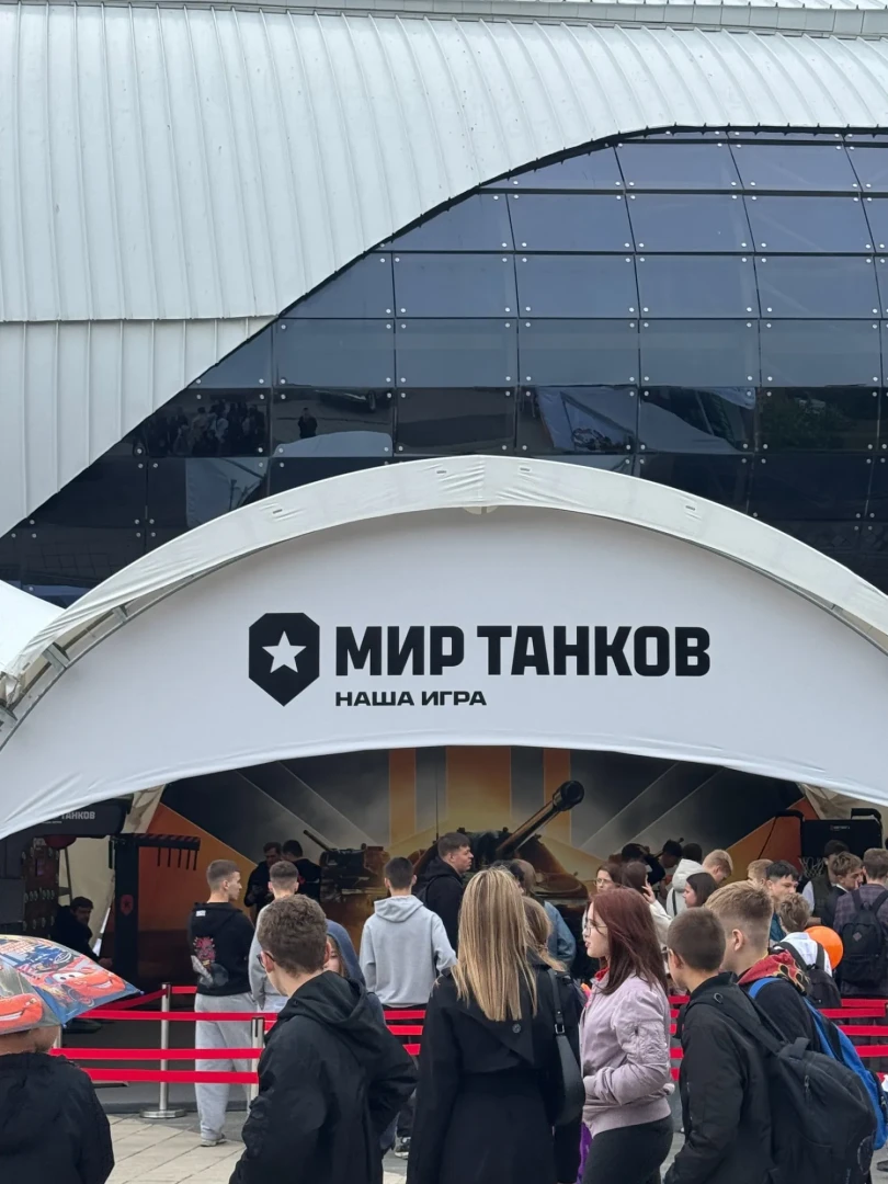 Здесь проходит офлайн-тусовка с игровой зоной и зонами активностей Мира танков. Куча как внутригровых призов, так и фирменного мерча!