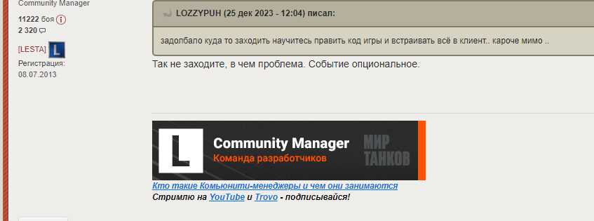 Манагэры нас любят и уважают, прислушиваются к мнениям и притензиям, общаются с нами лицом к лицу, гнусным высокомерием не страдают. "Не нравится, не играй" самая продвинутая формула решения всех проблем - нет игроков, нет проблем! Так держать манагэры лесты, открывайте дальше всем глаза, что "наша игра" просто помойка!