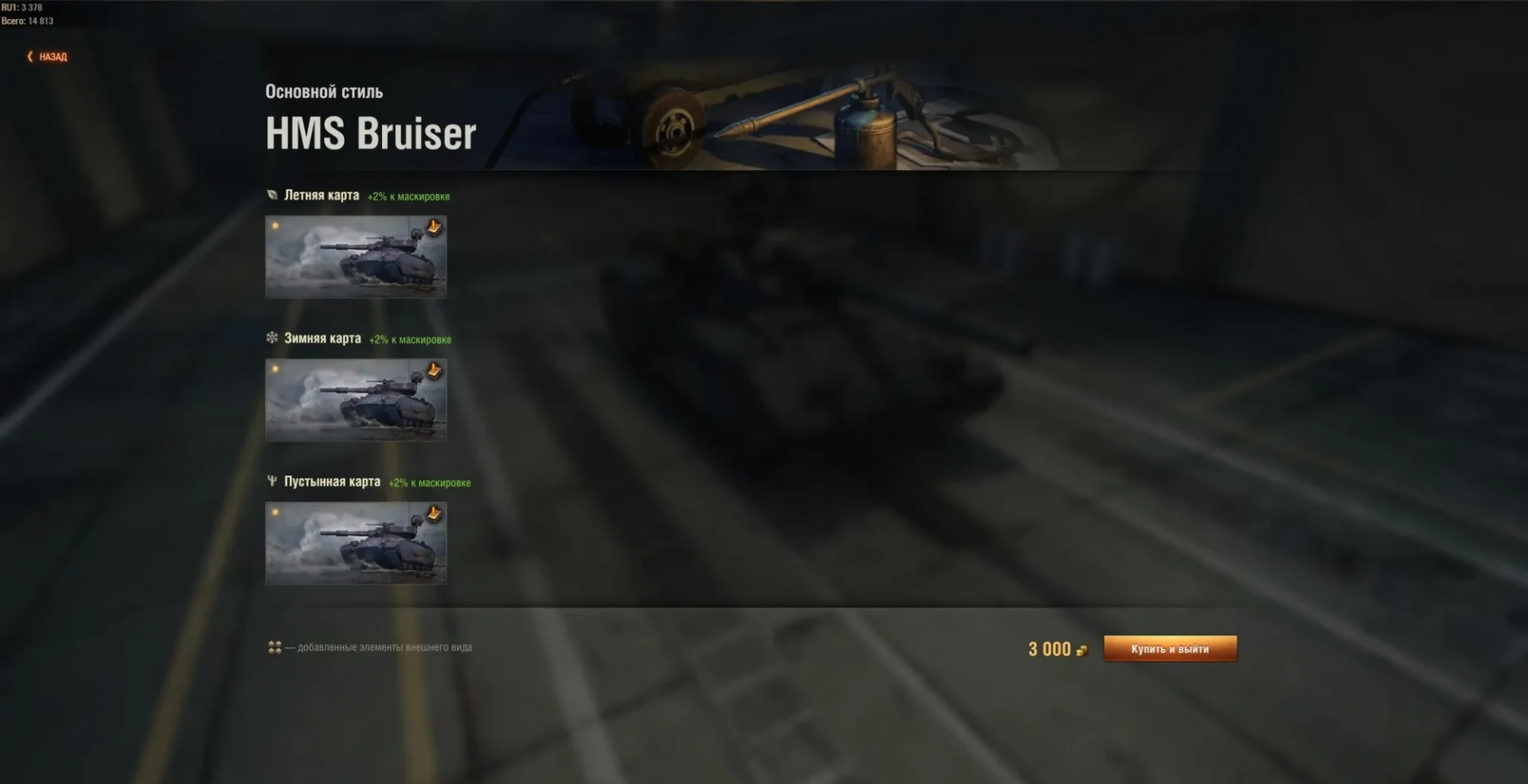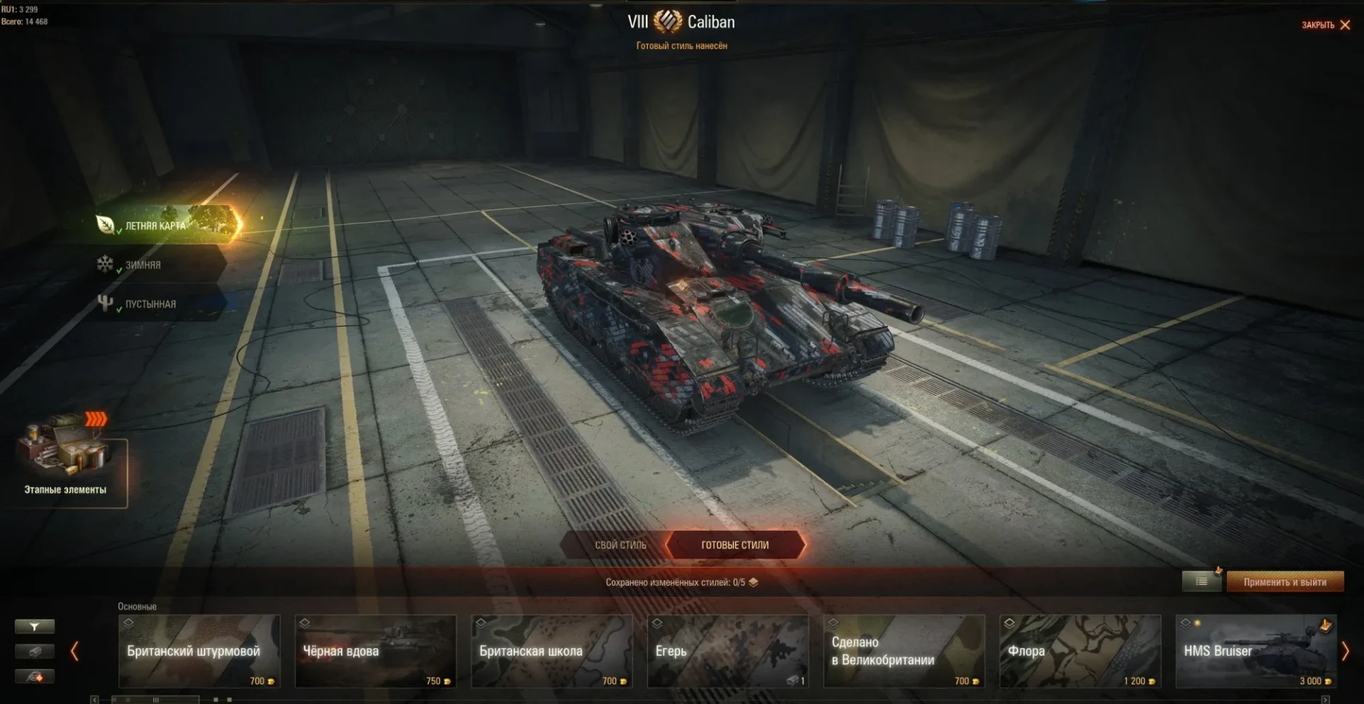 Танк Caliban ==> Внешний вид ==> Готовые стили ==> Подраздел «Основные».