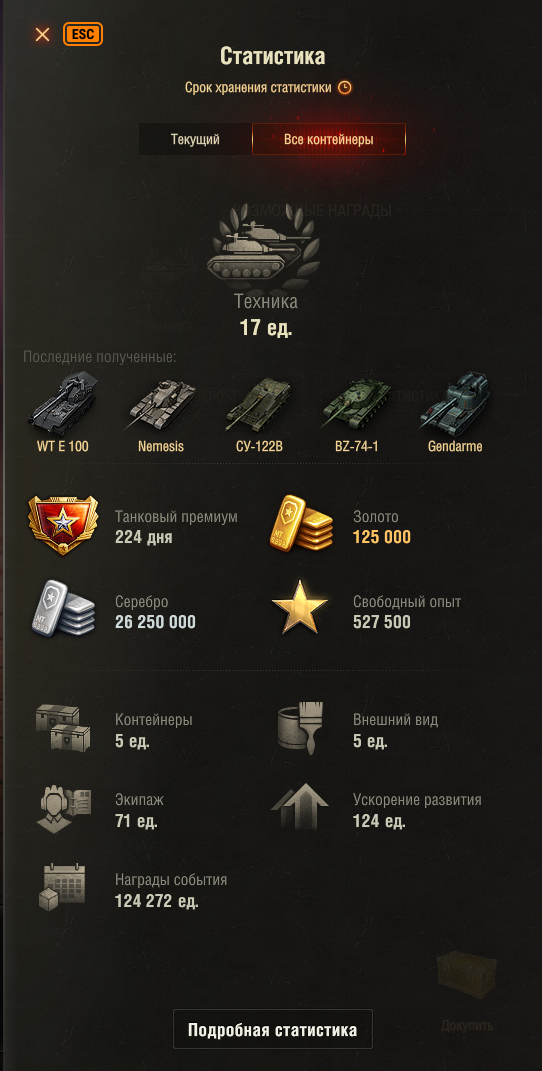 Обязательно кормим и развлекаем енота за серу, там за нахождение в топе по очкам дают легендарные контейнеры, в которых 100% есть танк прем 8 лвл, есть всего 5 рангов топов, можно тратить немного серы и быть в топе и получать контейнеры, в последнем этапе будет жандарм в 3д стиле если попасть топ 10 игроков. За попадание в остальные топы будет также танк, но не знаю какой.