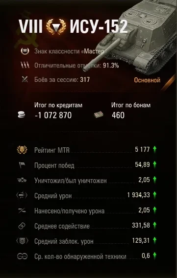 - 7 место. ИСУ-152 — экипаж был 3 перка, докачал до 5. Оборудование было боново-трофейное + оптика, играл на топовой пушке, на голде + доппаек. Инструкций не было на тот момент. Взял 3 отметку, забросил и пошел делать на ИСУ-152К.