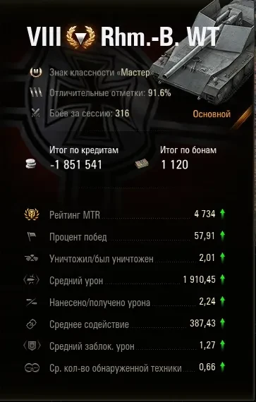 - 8 место. Rhm.-Borsig Waffenträger — экипаж 4 перка, докачал до 5. Оборудование трофейное + боновая оптика. Чередовал орудия, в основном играл на ДЦП пушке, на ней же сделал 3 отметку. Играл на голде + инструкция + доппаек + полевая. Фановая машинка, иногда катаю.