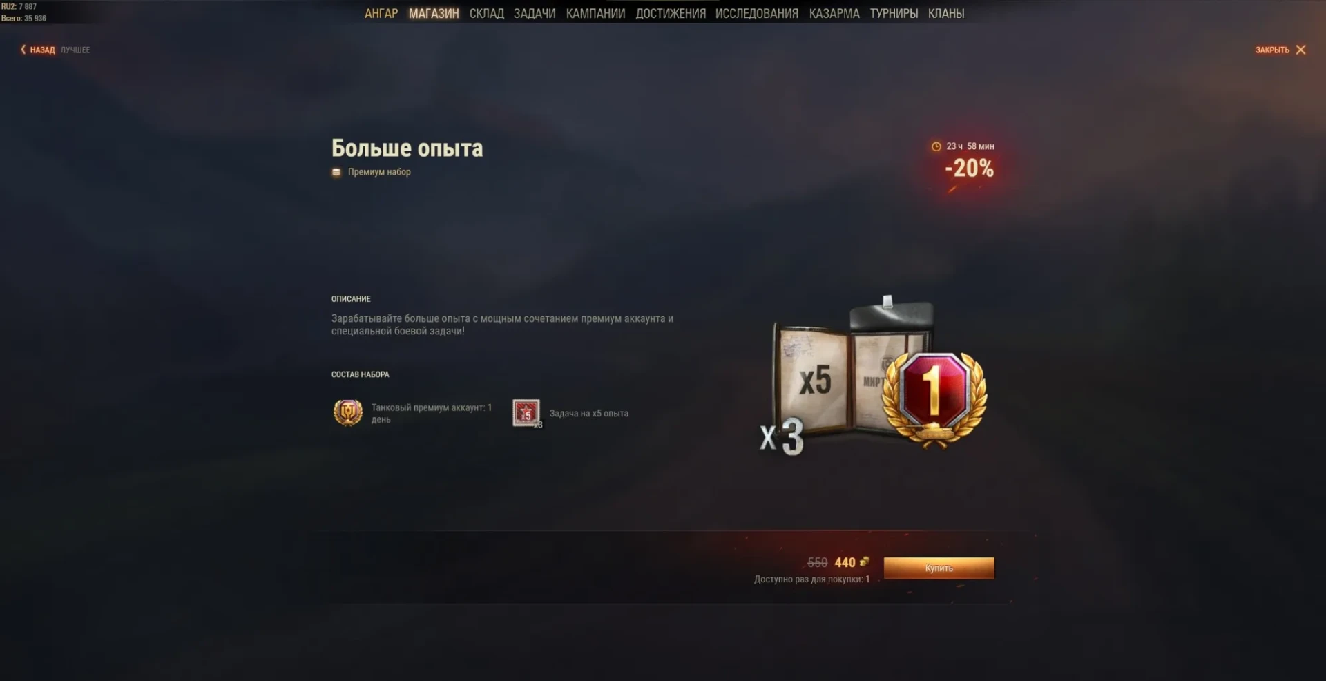 Набор: 1 день Танкового премиум аккаунта + 3 БЗ на x5.