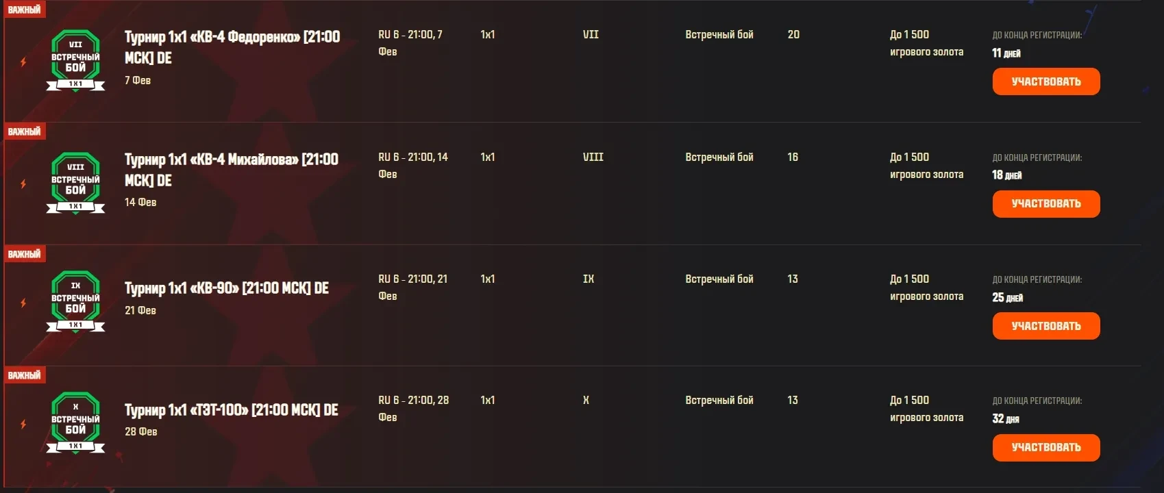Серия турниров на новых сверхтяжелых машинах СССР.
